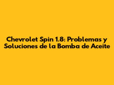 Chevrolet Spin 1.8: Problemas Y Soluciones De La Bomba De Aceite