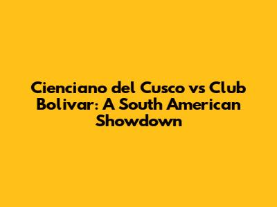 Cienciano Vs. Bolivar: A South American Showdown