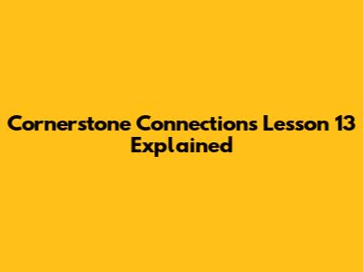 Cornerstone Connections: Lesson 13 Explained
