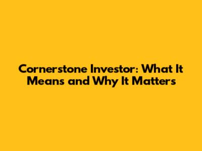 Cornerstone Investor: What It Means And Why It Matters