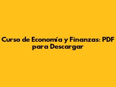 Curso De Economía Y Finanzas: PDF Para Descargar