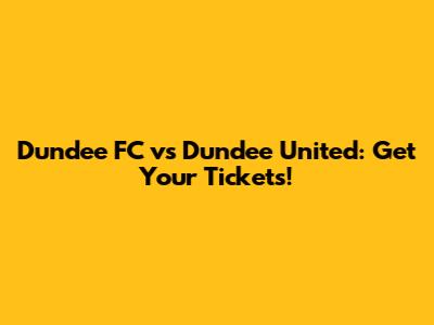 Dundee FC Vs Dundee United: Get Your Tickets!