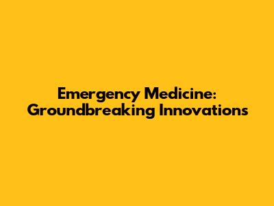 Emergency Medicine: Groundbreaking Innovations