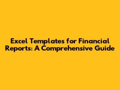 Excel Templates For Financial Reports: A Comprehensive Guide
