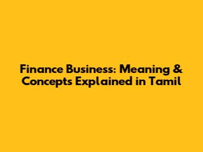 Finance Business: Meaning & Concepts Explained In Tamil