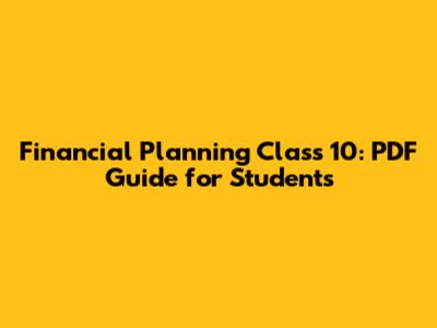 Financial Planning Class 10: PDF Guide For Students