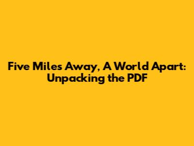 Hey guys! Today, we're diving deep into "Five Miles Away, A World Apart," specifically focusing on the PDF version. You know, sometimes you stumble upon a story that just grips you, and this one is definitely in that category. We're going to explore what makes this narrative so compelling, why the PDF format is so popular for this kind of read, and what you can expect when you download it. Get ready, because we're about to unpack a whole world hidden within those digital pages. Whether you're a seasoned reader or just looking for your next great escape, understanding the essence of "Five Miles Away, A World Apart" in its PDF form is key to appreciating its full impact. Let's get started on this literary journey, shall we? We'll be touching upon the themes, characters, and the overall experience of reading this story through a digital lens, so stick around!