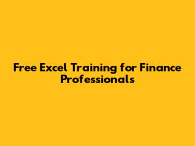 Free Excel Training For Finance Professionals