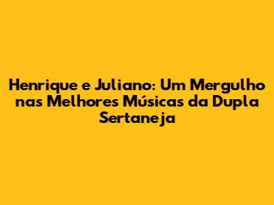 Agora, a parte que todos vocês estavam esperando: a seleção das melhores músicas de Henrique e Juliano! É claro que gosto é algo muito pessoal, mas preparei uma lista com aqueles sucessos que marcaram época e que não podem faltar na sua playlist. Vamos lá?