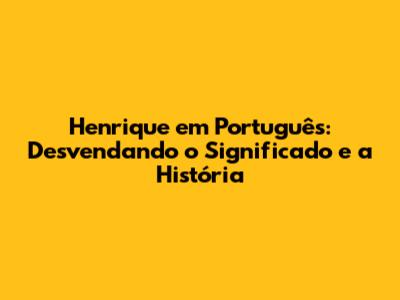 Henrique Em Português: Um Guia Completo