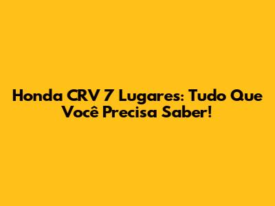 Honda CRV 7 Lugares: Tudo Que Você Precisa Saber!