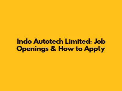 Indo Autotech Limited: Job Openings & How To Apply