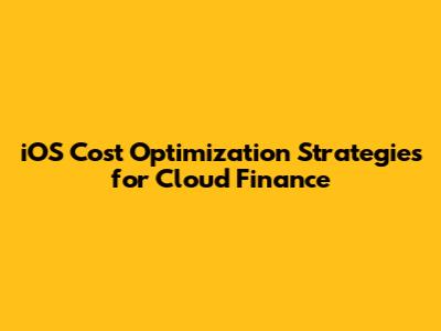 IOS Cost Optimization Strategies For Cloud Finance