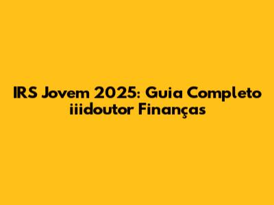 IRS Jovem 2025: Guia Completo Iiidoutor Finanças