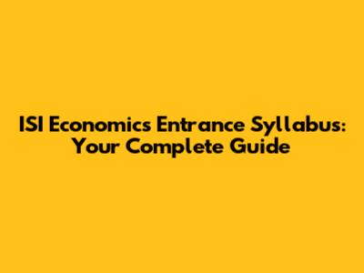 ISI Economics Entrance Syllabus: Your Complete Guide