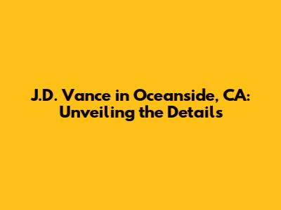 Hey everyone! Are you curious about whether J.D. Vance is hanging out in Oceanside, California, today? You're in the right place! We're diving deep to give you the lowdown on any potential visits by J.D. Vance to Oceanside. As a public figure, his schedule can be a bit of a mystery, but we'll explore all available resources to find out if he's currently in town or has plans to be. Let's face it, keeping tabs on politicians and public figures can be tricky, but that's what we're here for. We'll look at everything from official announcements to social media buzz to try and answer your question definitively. So, buckle up, and let's get started on this search together! It's always a good idea to stay informed, especially when it comes to the movements of prominent figures. We will focus on finding the most recent and reliable information so you are up to date. Let's unravel this mystery together! Ready to uncover the truth? Let's go!