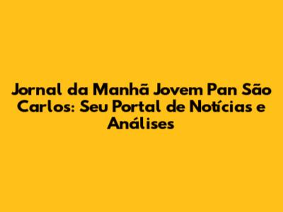 Jornal Da Manhã Jovem Pan São Carlos: Notícias E Análises