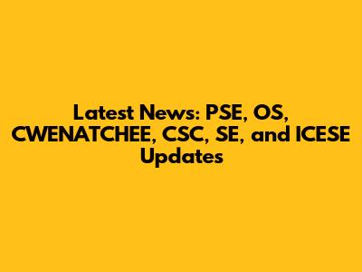Latest News: PSE, OS, CWENATCHEE, CSC, SE, And ICESE Updates