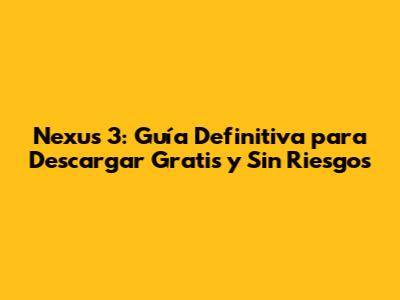 Nexus 3: Guía Definitiva Para Descargar Gratis Y Sin Riesgos