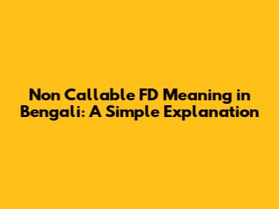 Non Callable FD Meaning In Bengali: A Simple Explanation