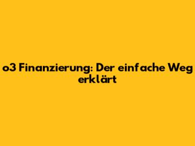 O3 Finanzierung: Der Einfache Weg Erklärt