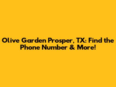 Craving some delicious Italian-American cuisine in Prosper, Texas? You're probably looking for the Olive Garden Prosper phone number! Well, you've landed in the right spot. This article will give you all the info you need to connect with your local Olive Garden, plus some extra goodies about what makes this restaurant a favorite. Let's dive in!