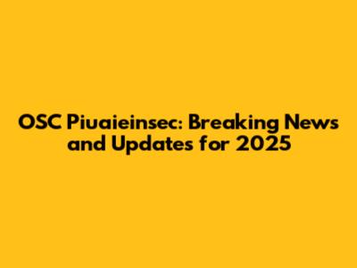 OSC Piuaieinsec: Breaking News And Updates For 2025
