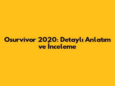 Osurvivor 2020: Detaylı Anlatım Ve İnceleme