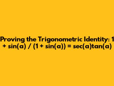 Hey guys! Today, we're diving into the fascinating world of trigonometry to tackle a classic problem: proving a trigonometric identity. Specifically, we'll be working on demonstrating that 1 + sin(a) / (1 + sin(a)) = sec(a)tan(a). This might look a bit intimidating at first glance, but don't worry! We'll break it down step by step, making sure everyone understands the logic behind each move. So, grab your calculators (though we won't really need them for this!), and let's get started on this trigonometric adventure!
