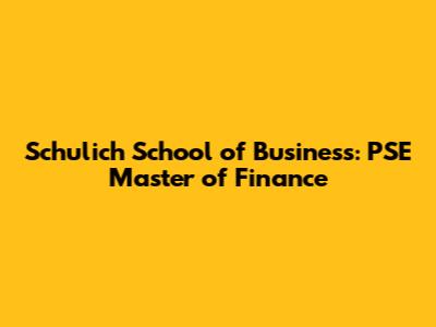 Schulich School Of Business: PSE Master Of Finance