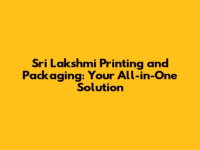 Sri Lakshmi Printing And Packaging: Your All-in-One Solution