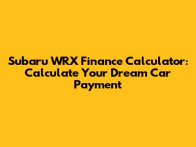 Subaru WRX Finance: Calculate Your Dream Car Payment