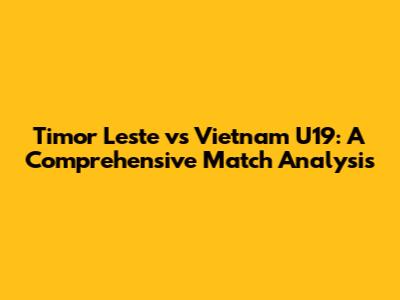 Timor Leste Vs Vietnam U19: Match Analysis, Highlights & Predictions