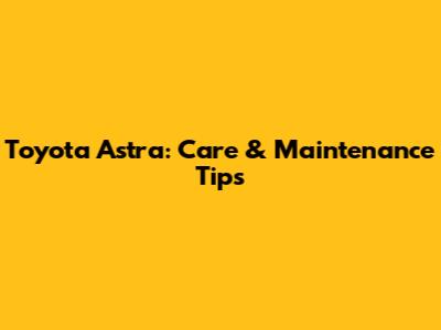 Toyota Astra: Care & Maintenance Tips