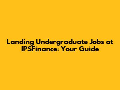 Unlocking Undergraduate Job Opportunities At IPSFinance