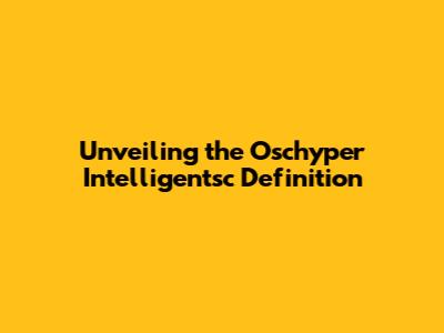 Unveiling The Oschyper Intelligentsc Definition