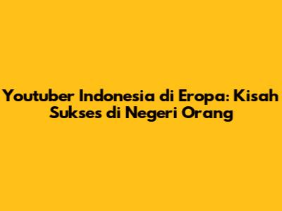 Youtuber Indonesia Di Eropa: Kisah Sukses Di Negeri Orang